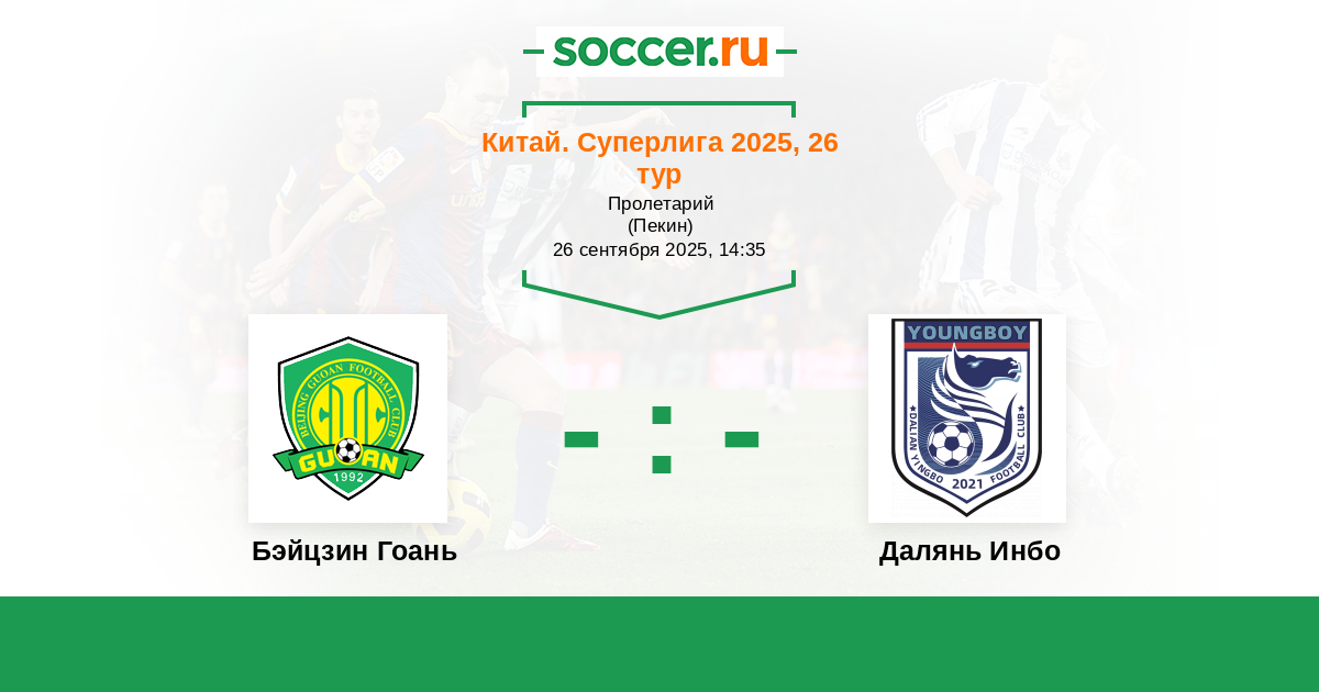 Протокол матча Бэйцзин Гоань против Далянь Инбо