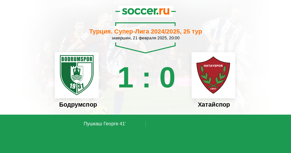 41' (1:0) Пушкаш Георге (9) (Анталяли Тайлан (5))
