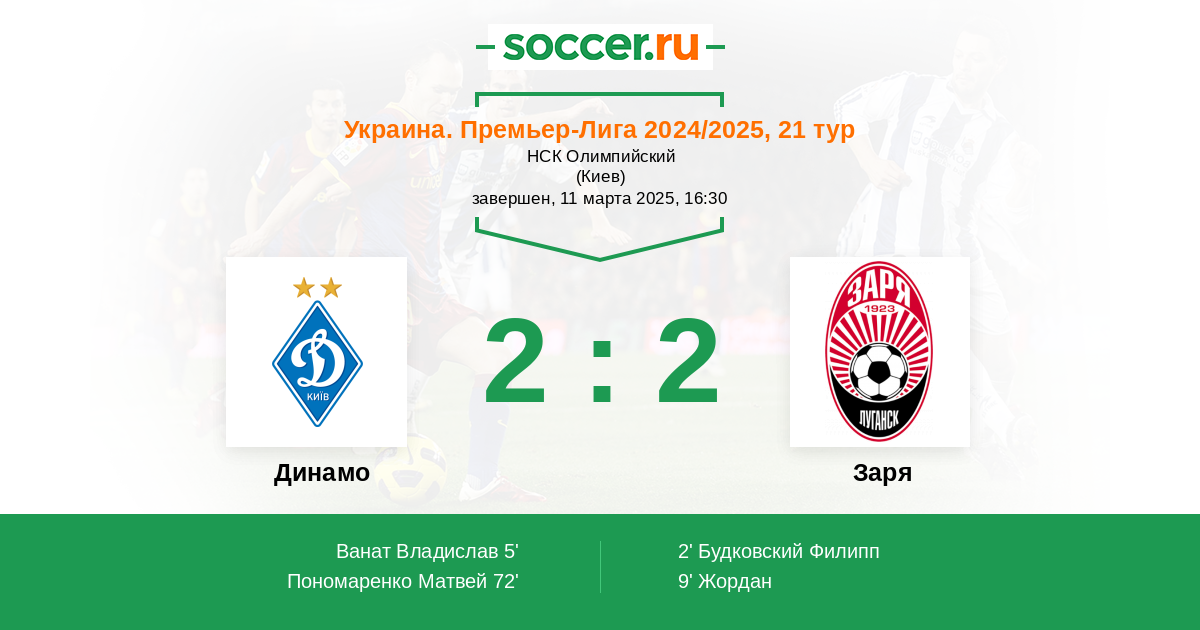 Протокол матча Динамо против Заря