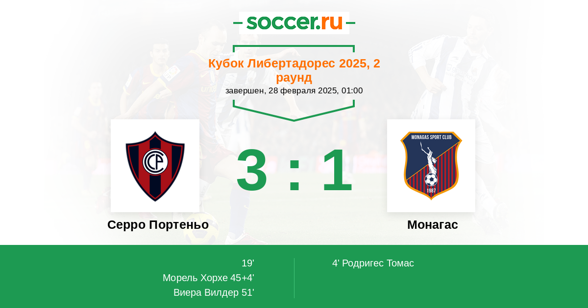 Протокол матча Серро Портеньо против Монагас