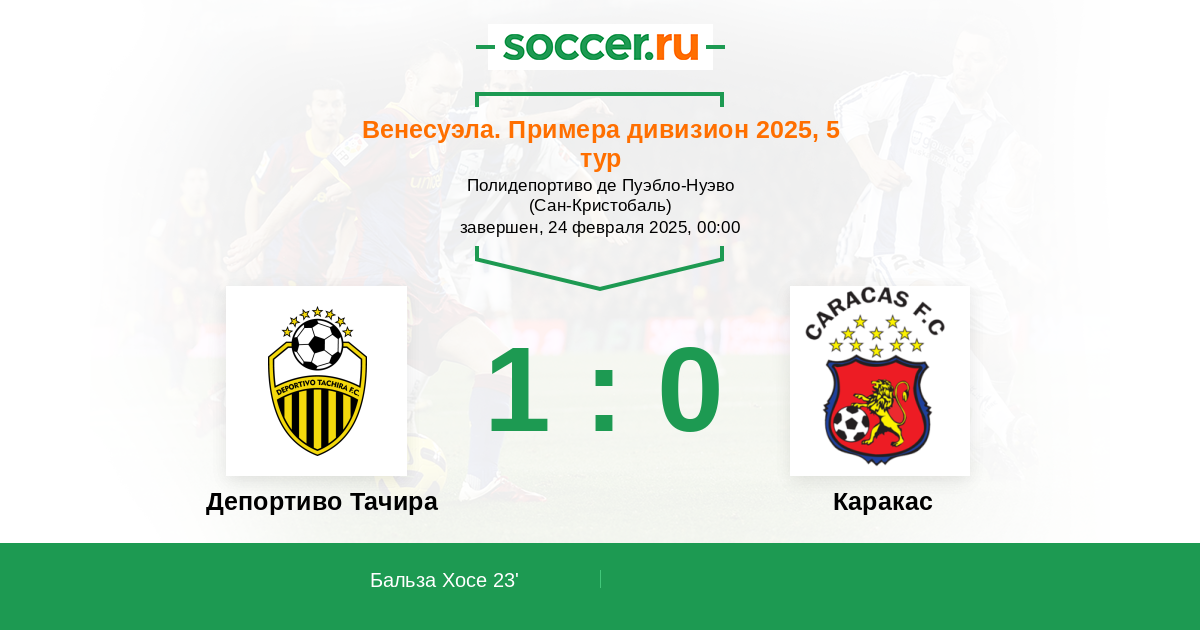 Протокол матча Депортиво Тачира против Каракас