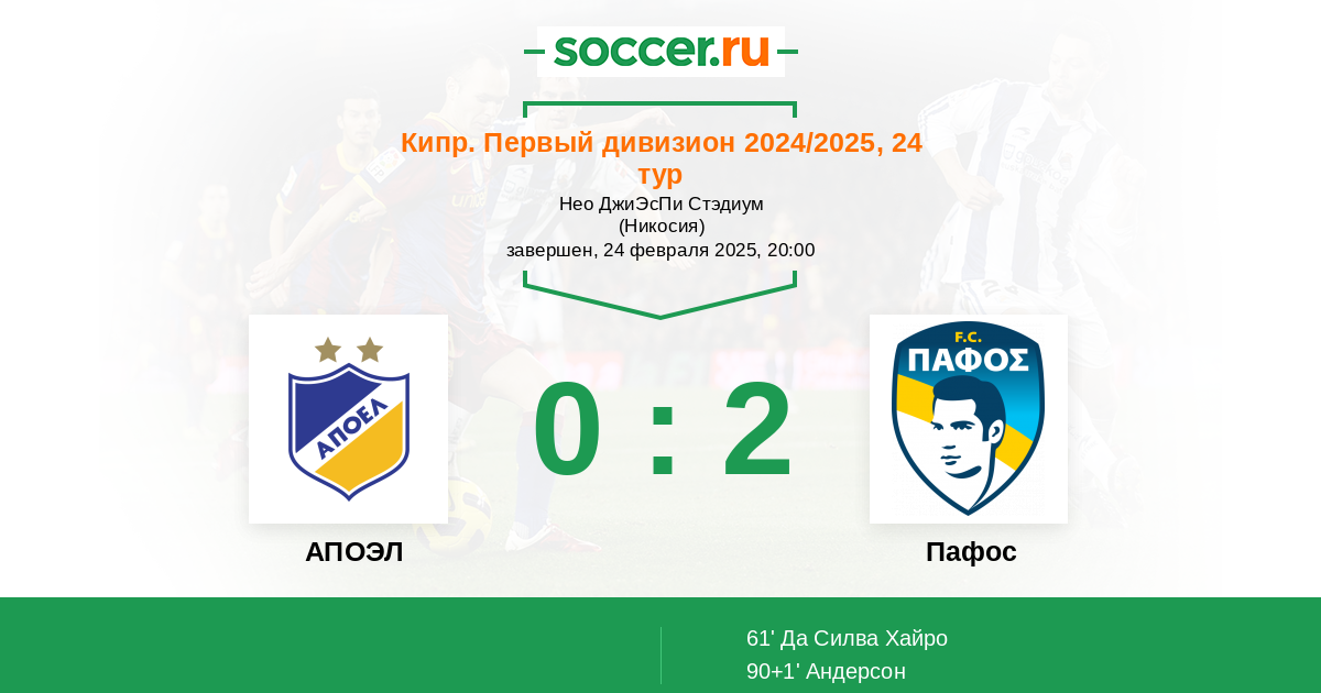Протокол матча АПОЭЛ против Пафос
