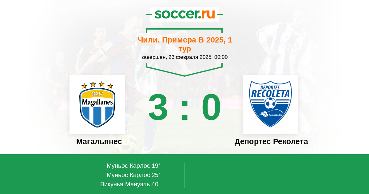 Протокол матча Магальянес против Депортес Реколета