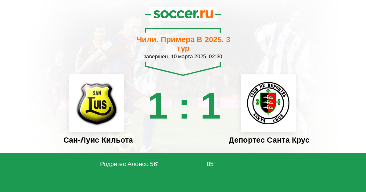Протокол матча Сан-Луис Кильота против Депортес Санта Крус