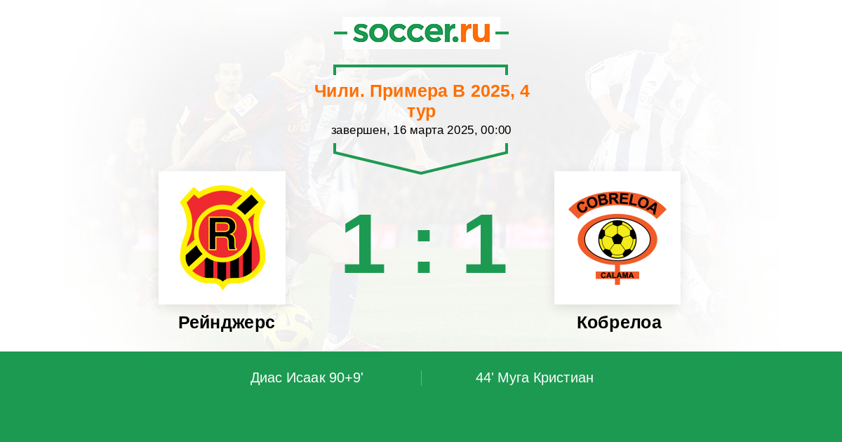 Протокол матча Рейнджерс против Кобрелоа