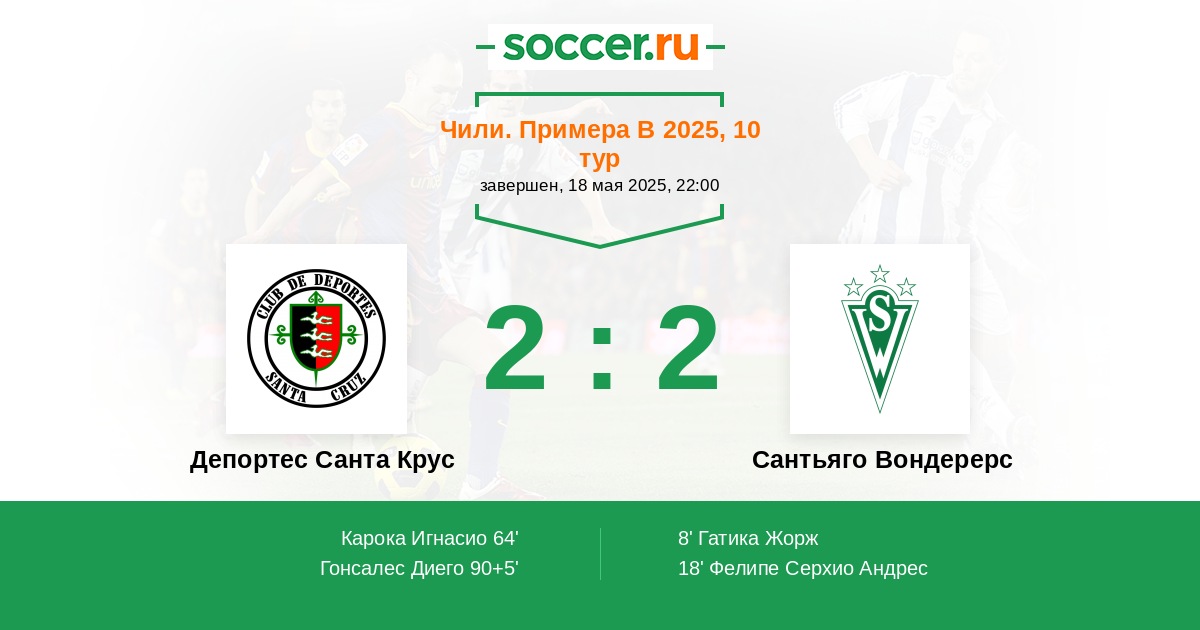 Протокол матча Депортес Санта Крус против Сантьяго Вондерерс