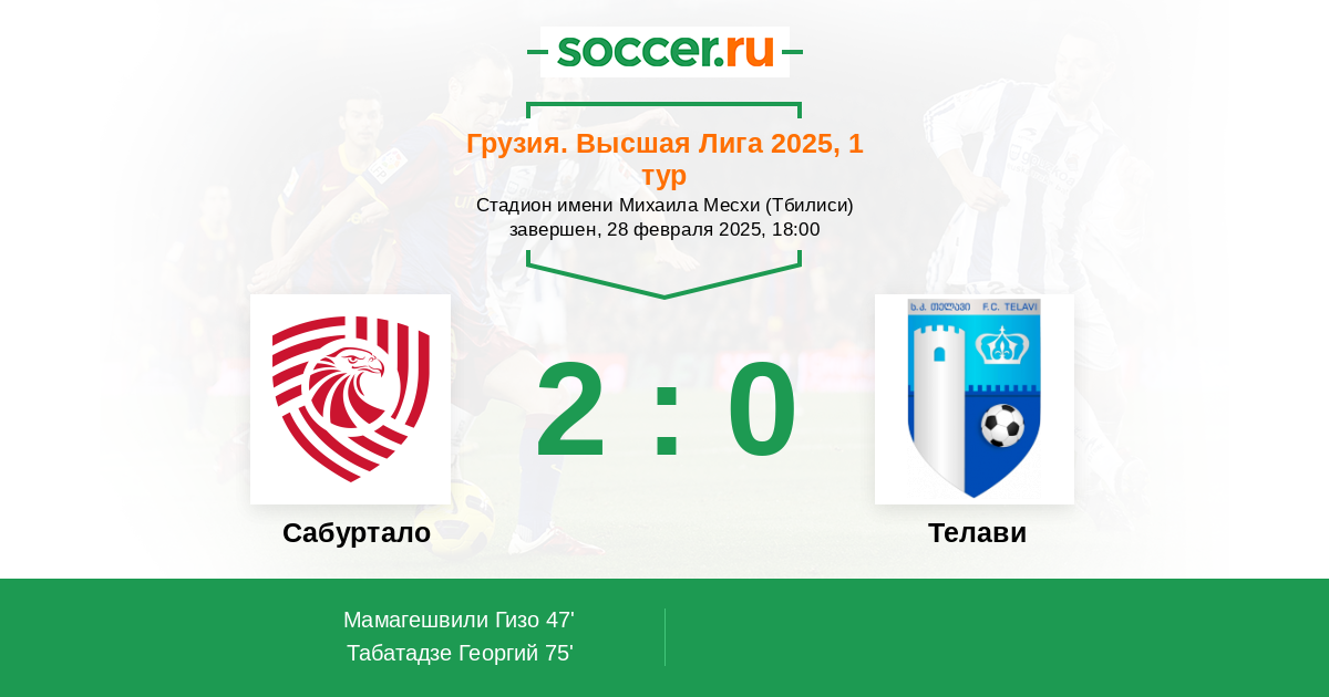 Протокол матча Сабуртало против Телави