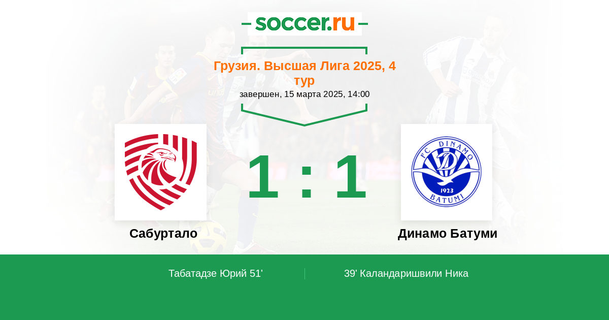Протокол матча Сабуртало против Динамо Батуми