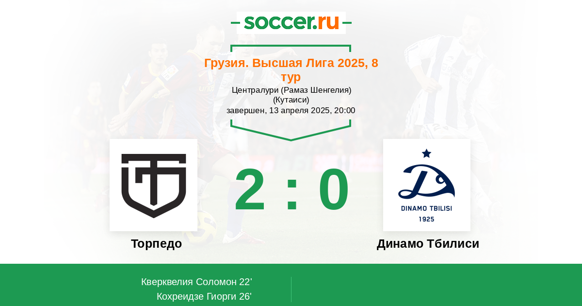 Протокол матча Торпедо против Динамо Тбилиси