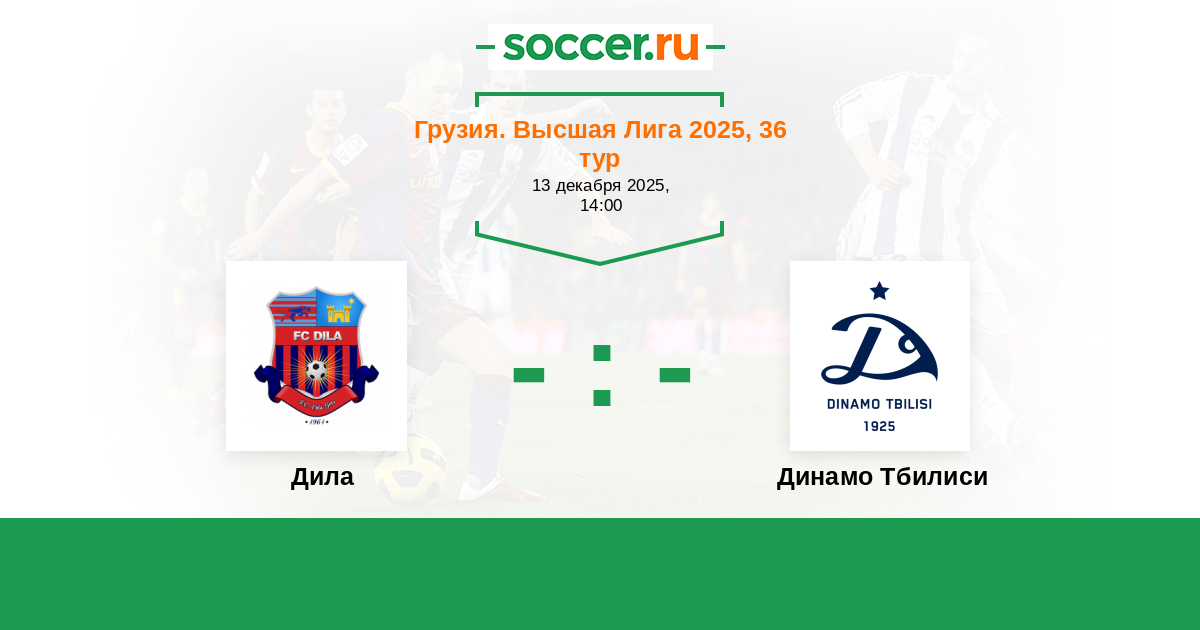 Грузия. Высшая лига 16.09.2021 Динамо Тбилиси Логотип футбольный клуб Динамо Тбилиси 0:0 Логотип футбольный клуб Дила (Гори) Дила