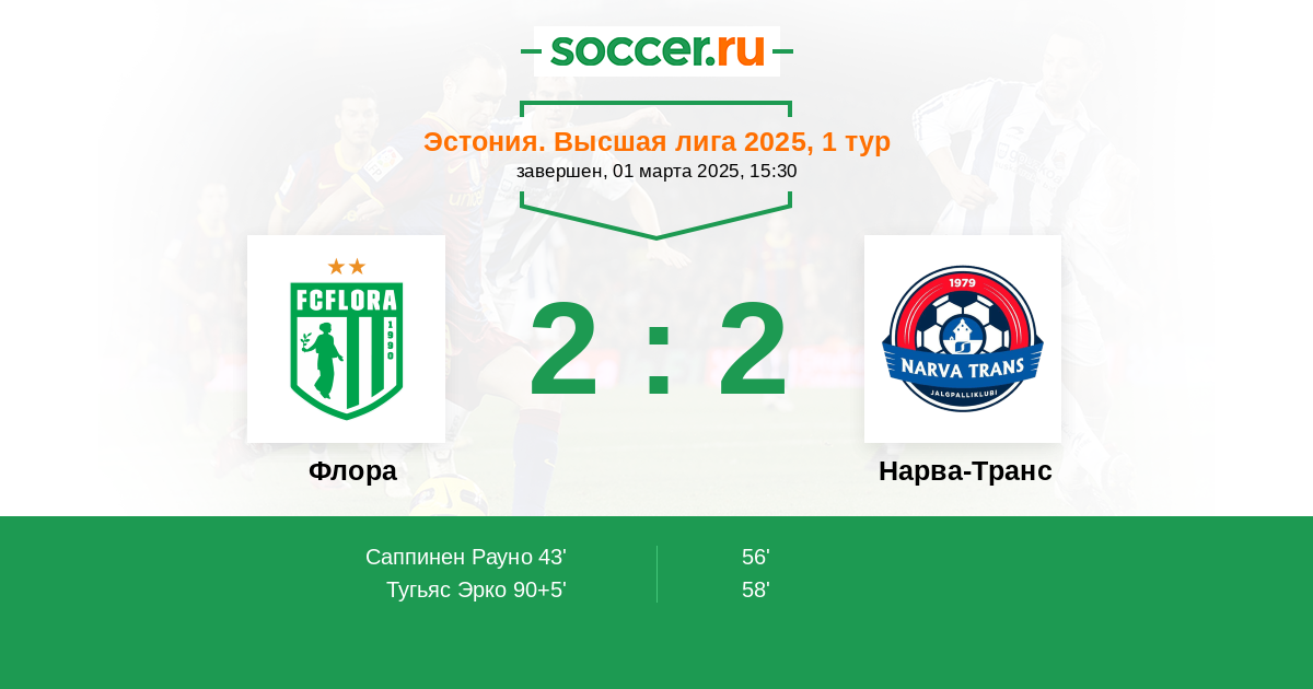 Протокол матча Флора против Нарва-Транс