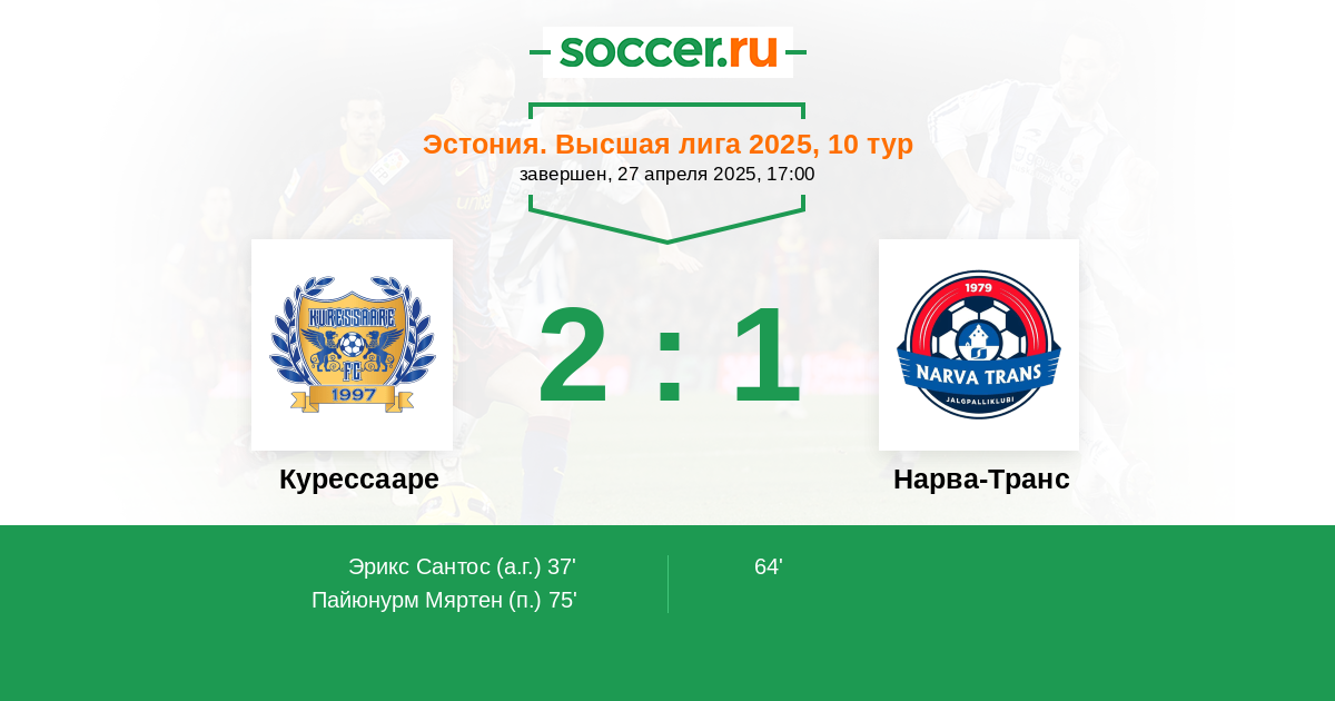 Протокол матча Курессааре против Нарва-Транс