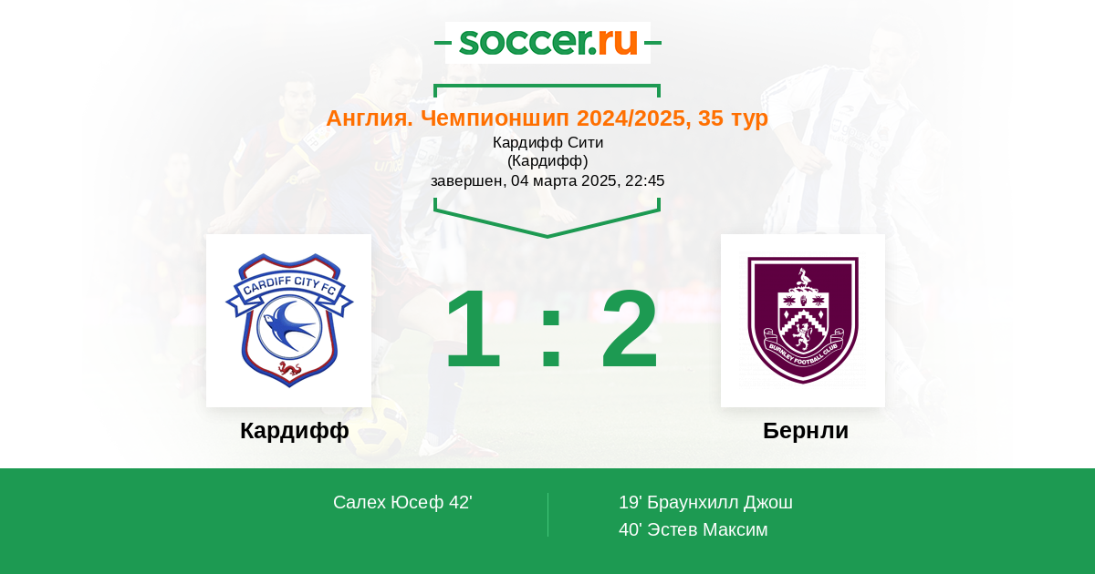 Протокол матча Кардифф против Бернли