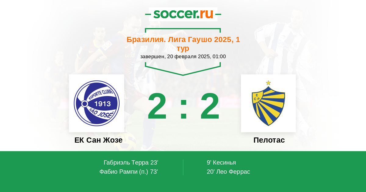 Протокол матча ЕК Сан Жозе против Пелотас