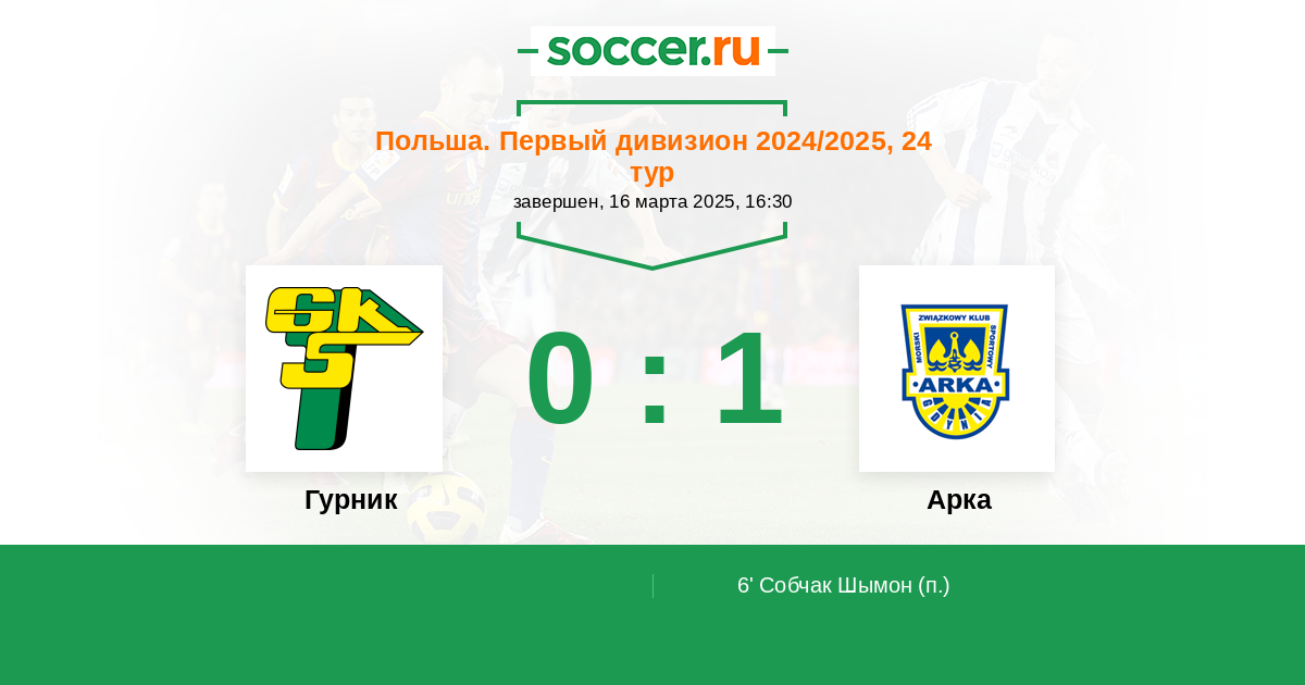Протокол матча Гурник против Арка
