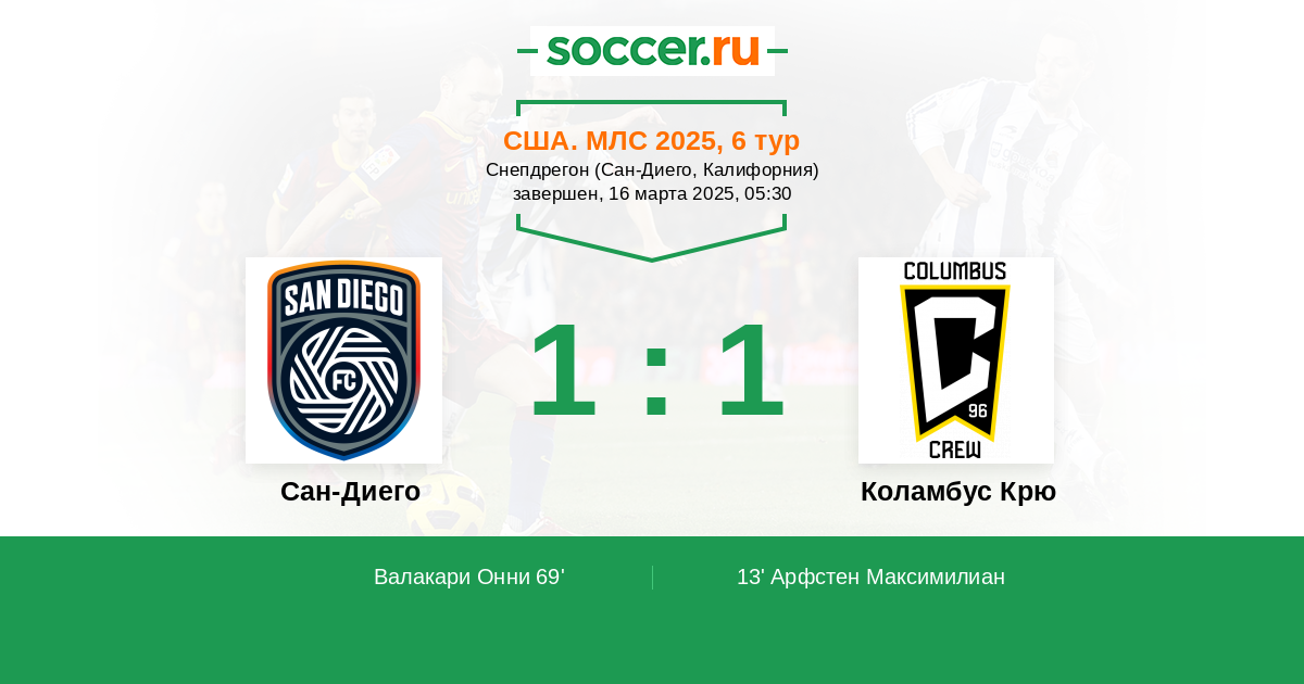 Протокол матча Сан-Диего против Коламбус Крю