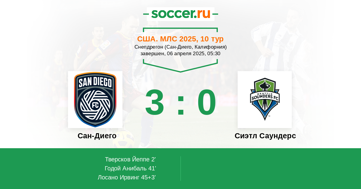 Протокол матча Сан-Диего против Сиэтл Саундерс