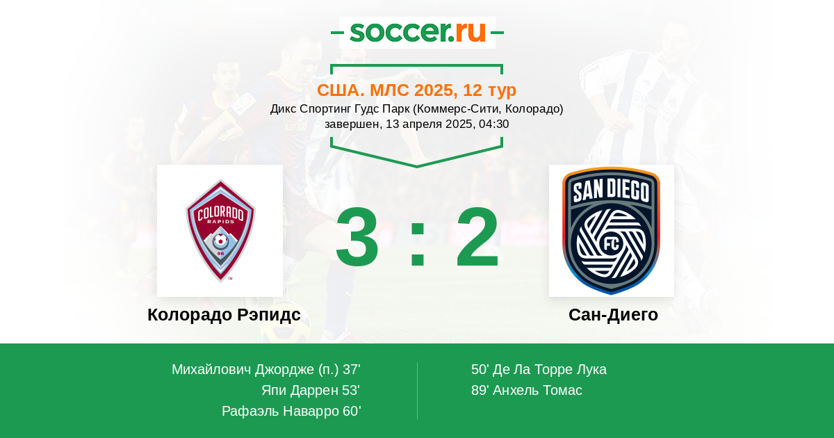 Протокол матча Колорадо Рэпидс против Сан-Диего