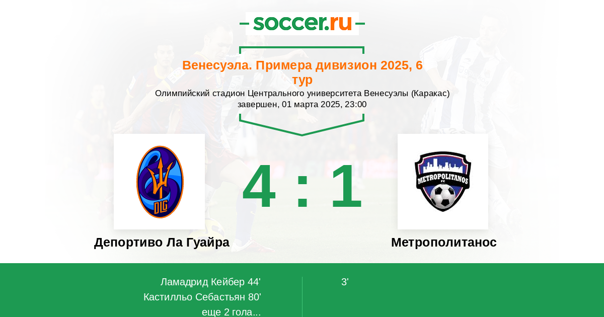 Протокол матча Депортиво Ла Гуайра против Метрополитанос