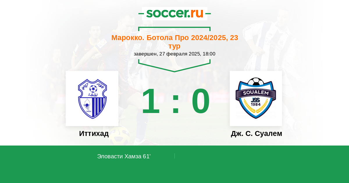 61' (1:0) Эловасти Хамза (18) (Мутуали Мухсин (5))