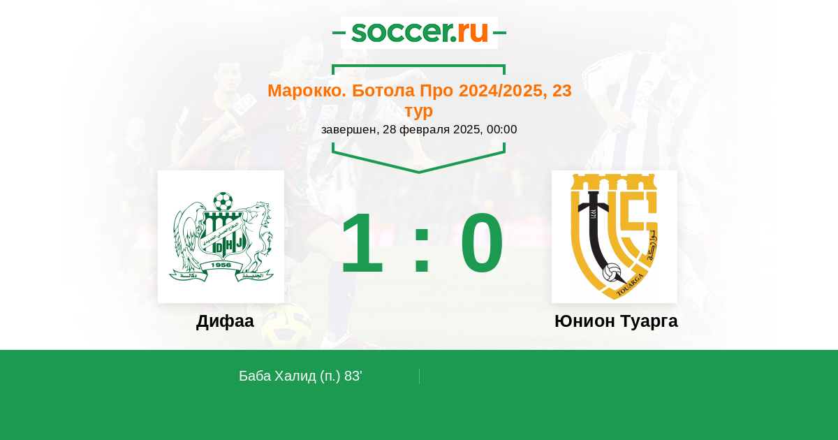 Протокол матча Дифаа против Юнион Туарга