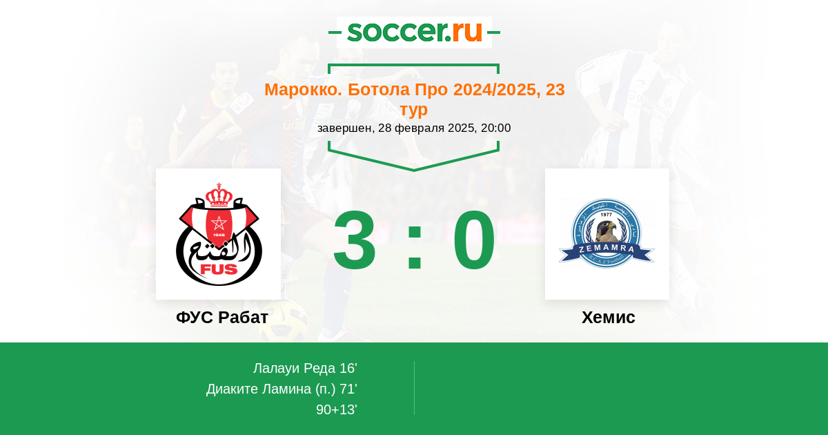 Протокол матча ФУС Рабат против Хемис