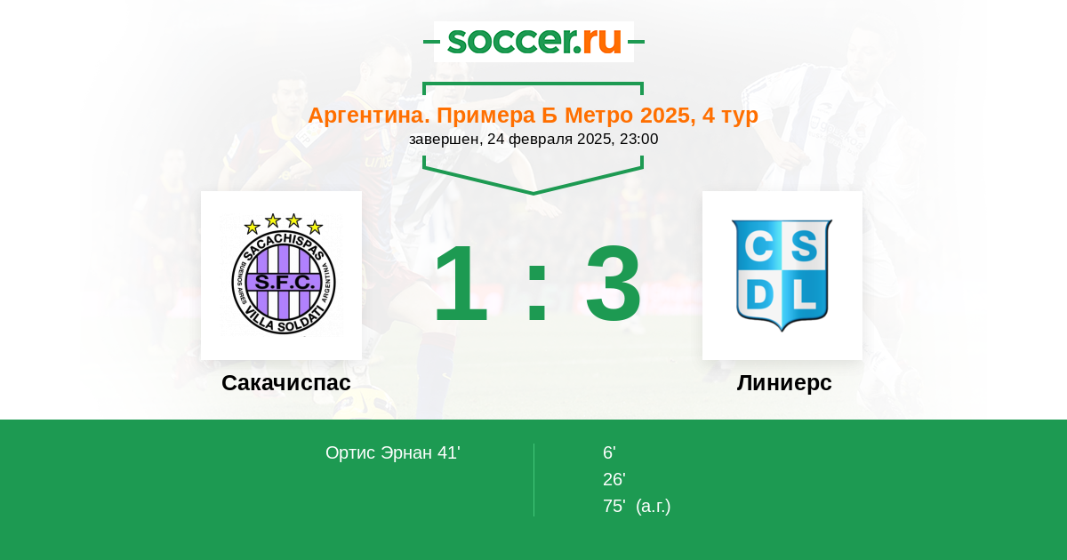 Протокол матча Сакачиспас против Линиерс
