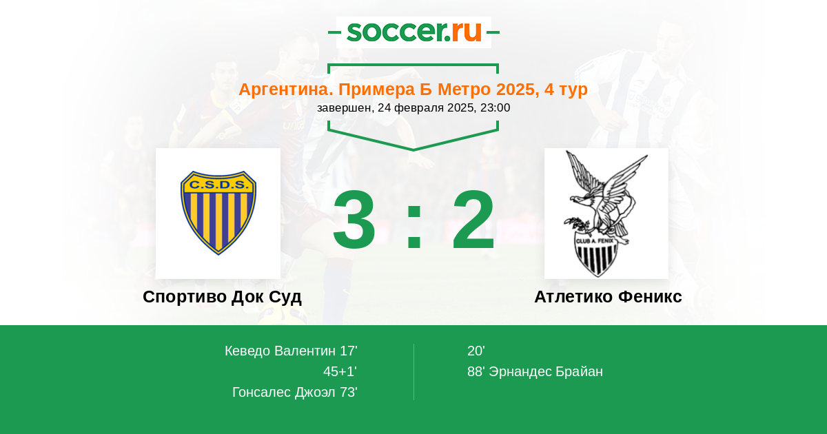 Протокол матча Спортиво Док Суд против Атлетико Феникс