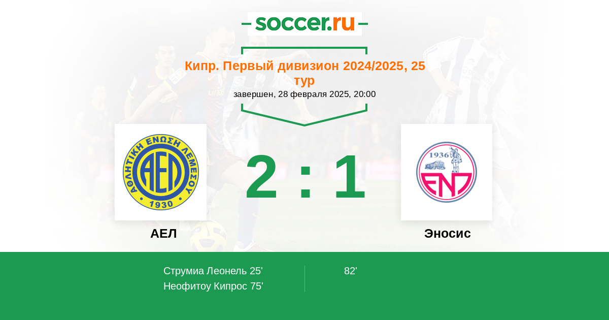 Протокол матча АЕЛ против Эносис