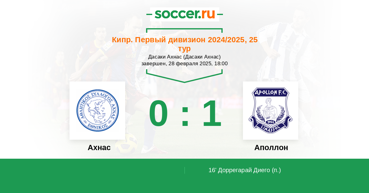 Протокол матча Ахнас против Аполлон