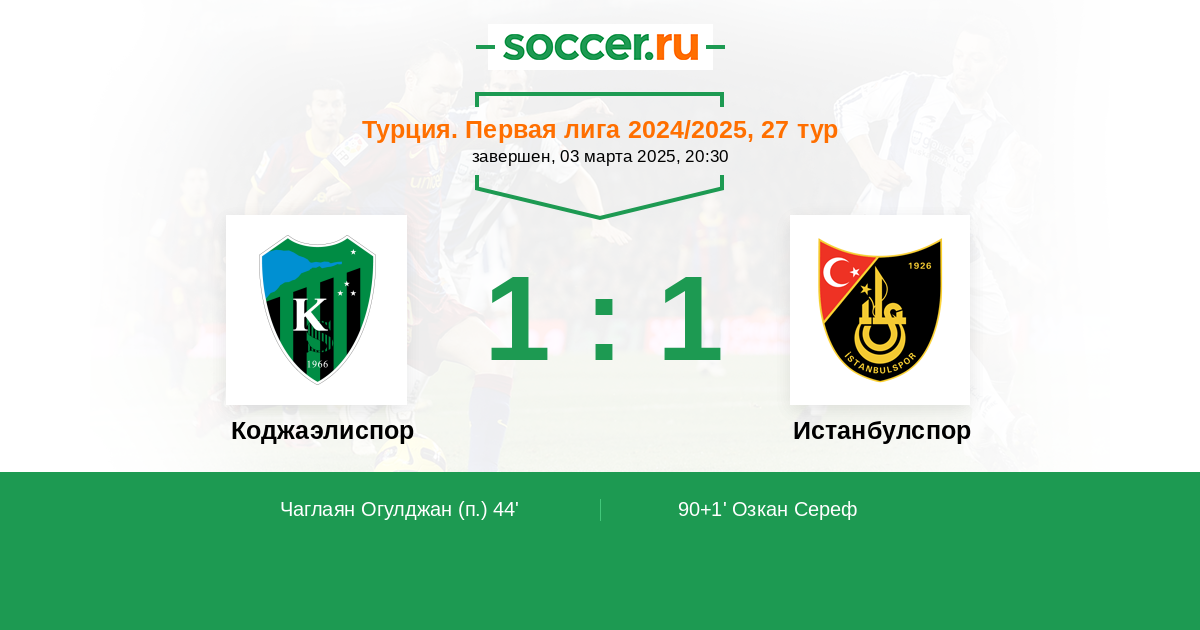 Протокол матча Коджаэлиспор против Истанбулспор
