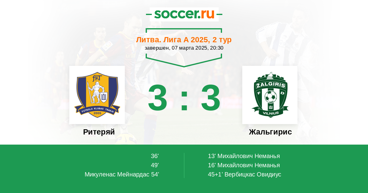 Протокол матча Ритеряй против Жальгирис