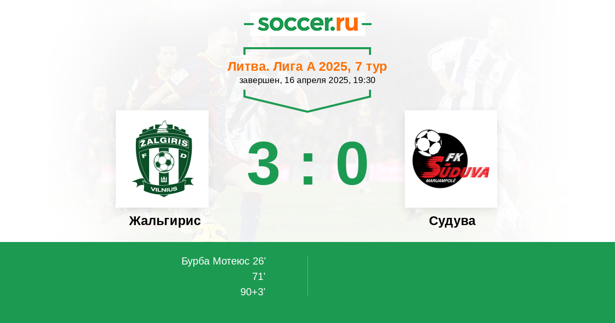 Протокол матча Жальгирис против Судува