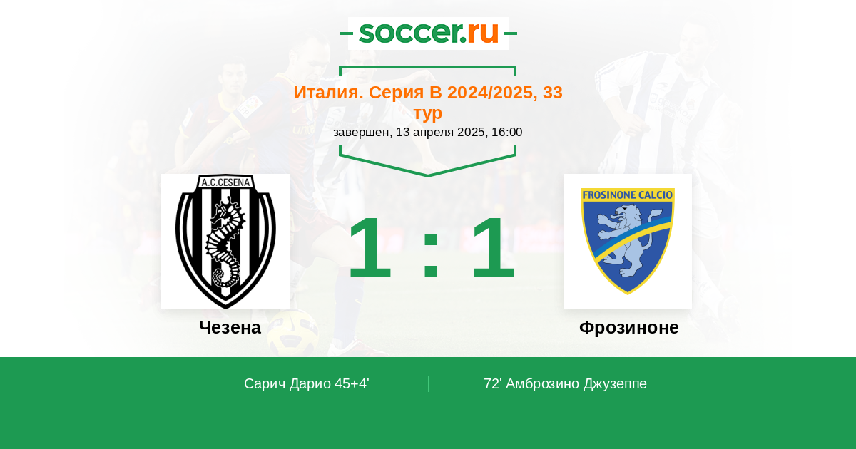 Протокол матча Чезена против Фрозиноне