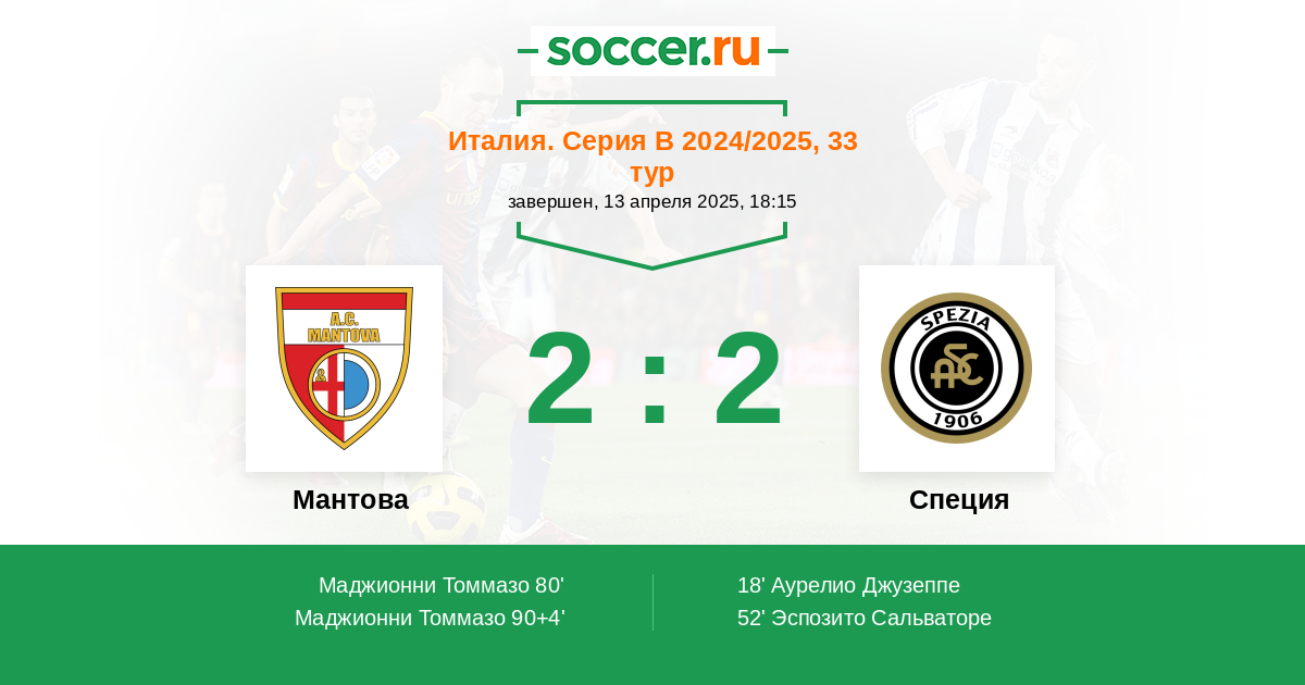 Протокол матча Мантова против Специя