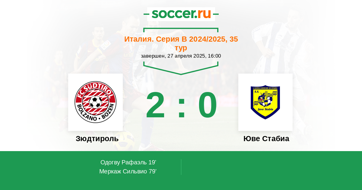 Протокол матча Зюдтироль против Юве Стабиа