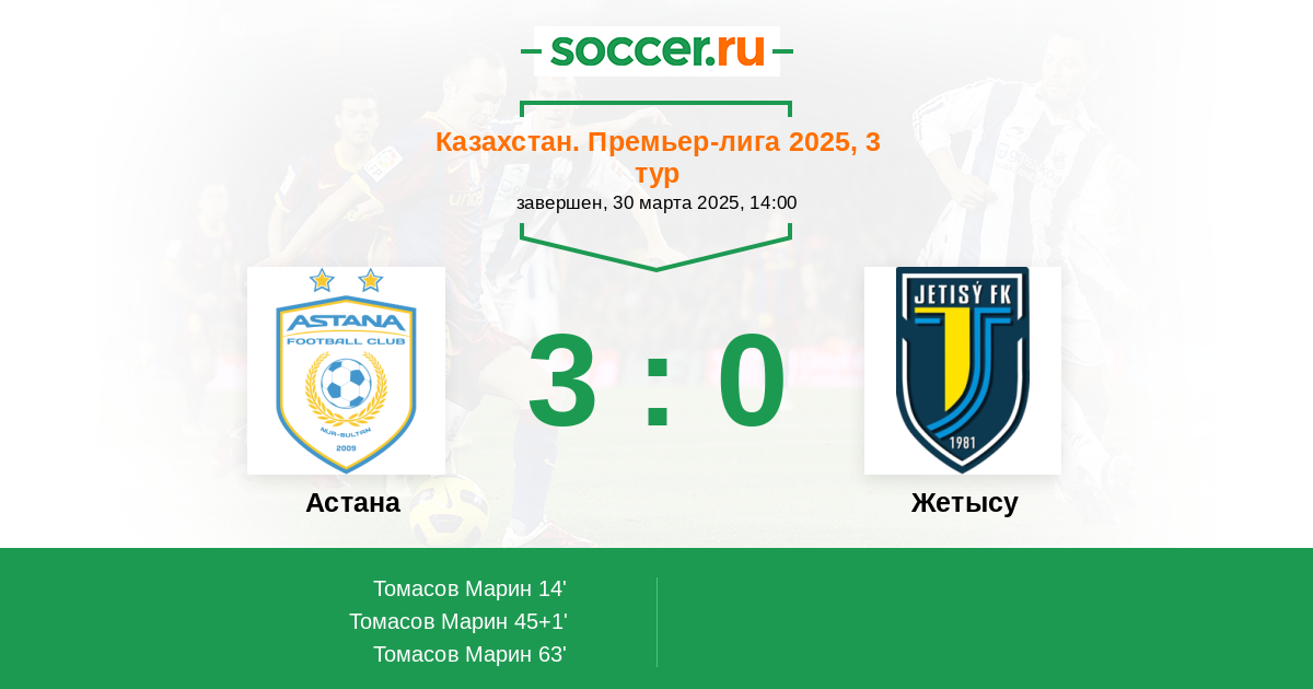 Протокол матча Астана против Жетысу