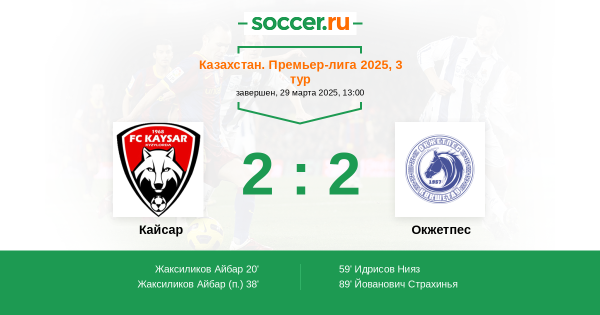 Протокол матча Кайсар против Окжетпес