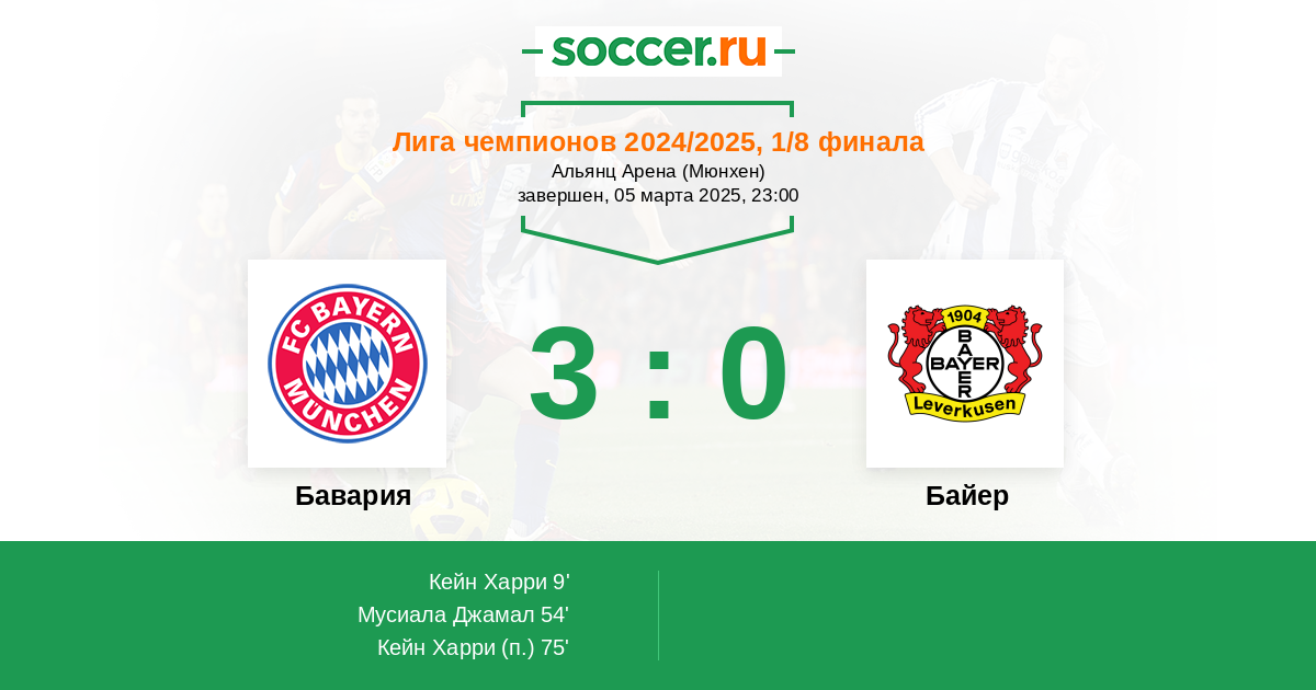 Протокол матча Бавария против Байер