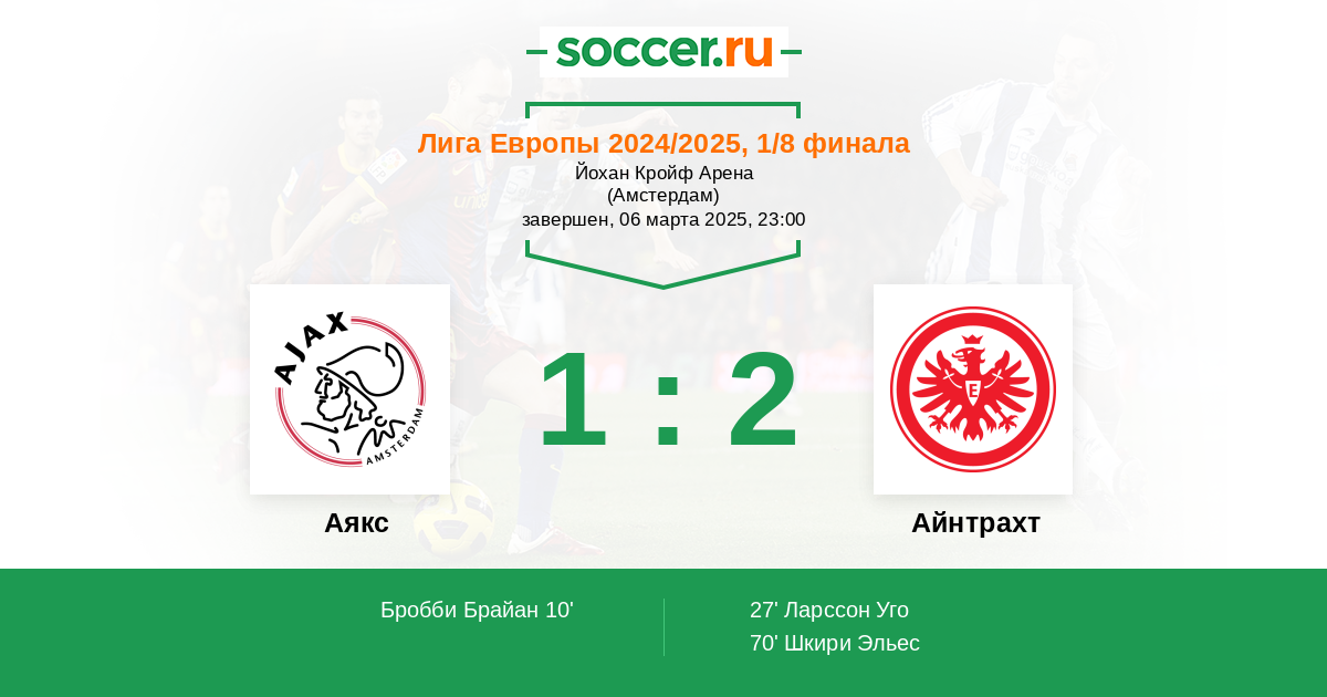 Протокол матча Аякс против Айнтрахт