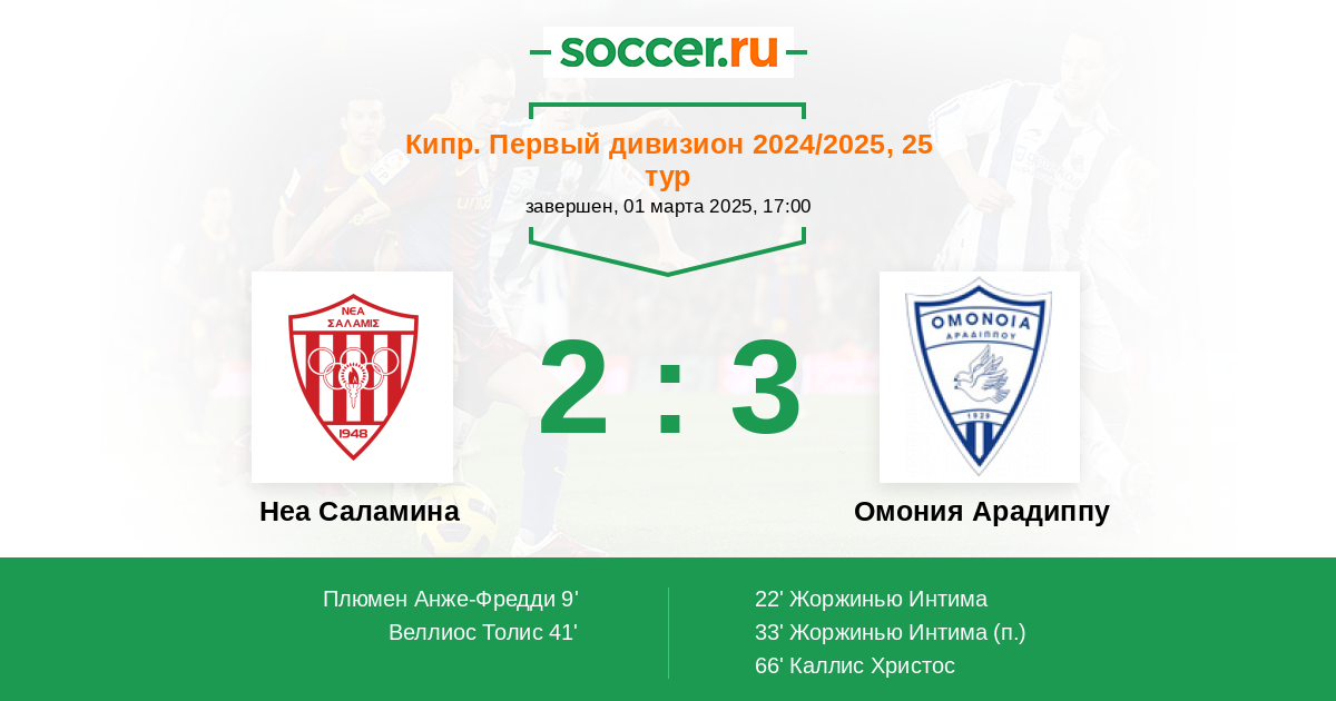 Протокол матча Неа Саламина против Омония Арадиппу