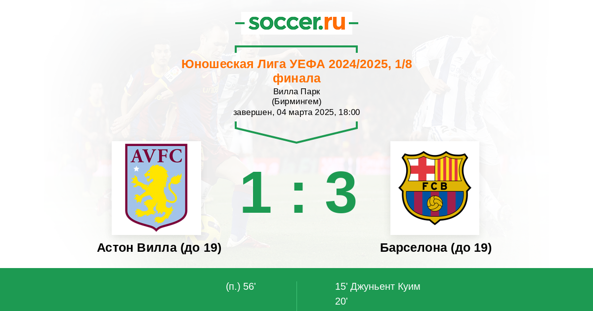 Протокол матча Астон Вилла (до 19) против Барселона (до 19)