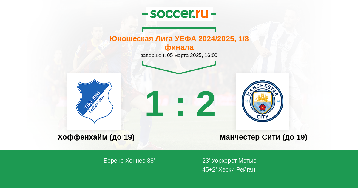 Протокол матча Хоффенхайм (до 19) против Манчестер Сити (до 19)