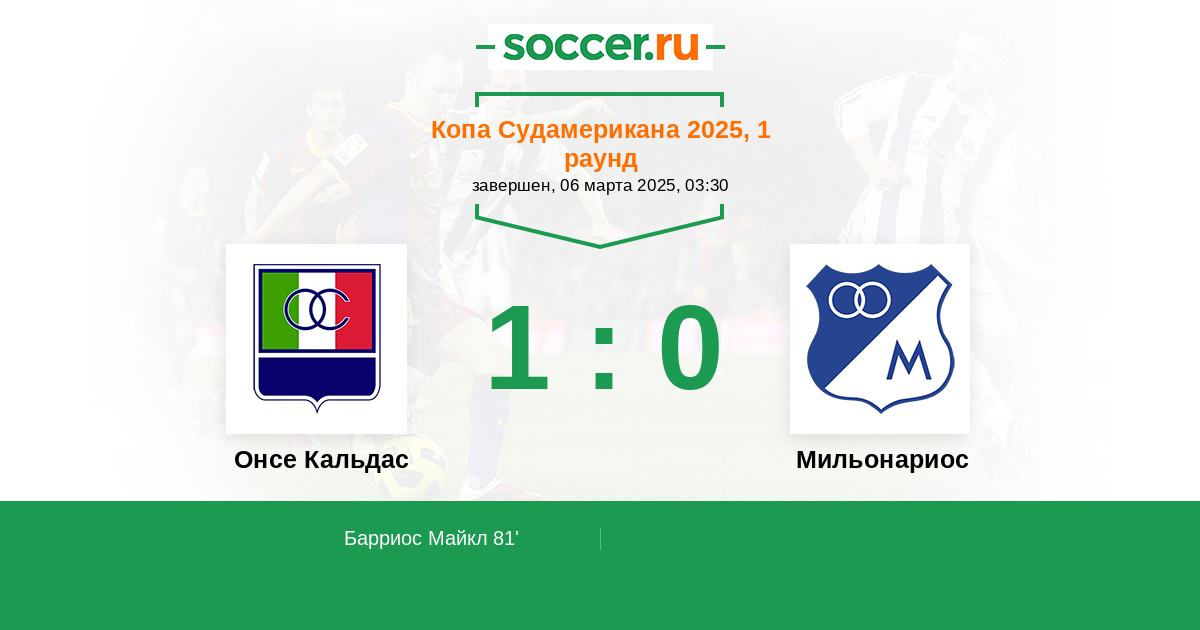 Протокол матча Онсе Кальдас против Мильонариос