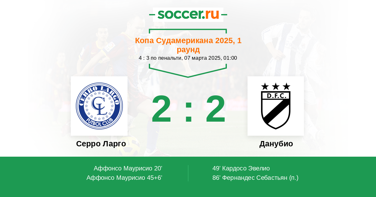 Протокол матча Серро Ларго против Данубио