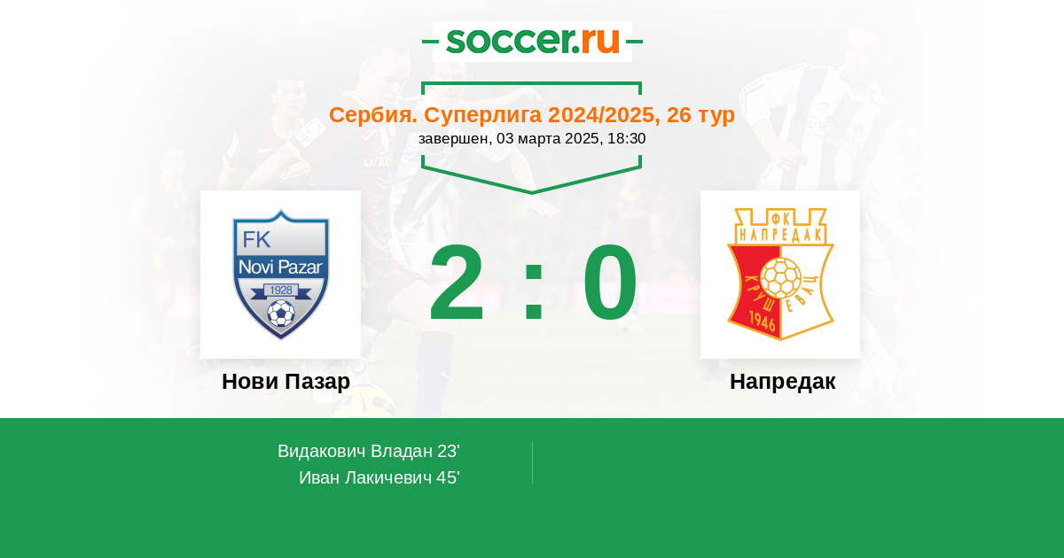 23' (1:0) Видакович Владан (17) (Иван Лакичевич (33))
