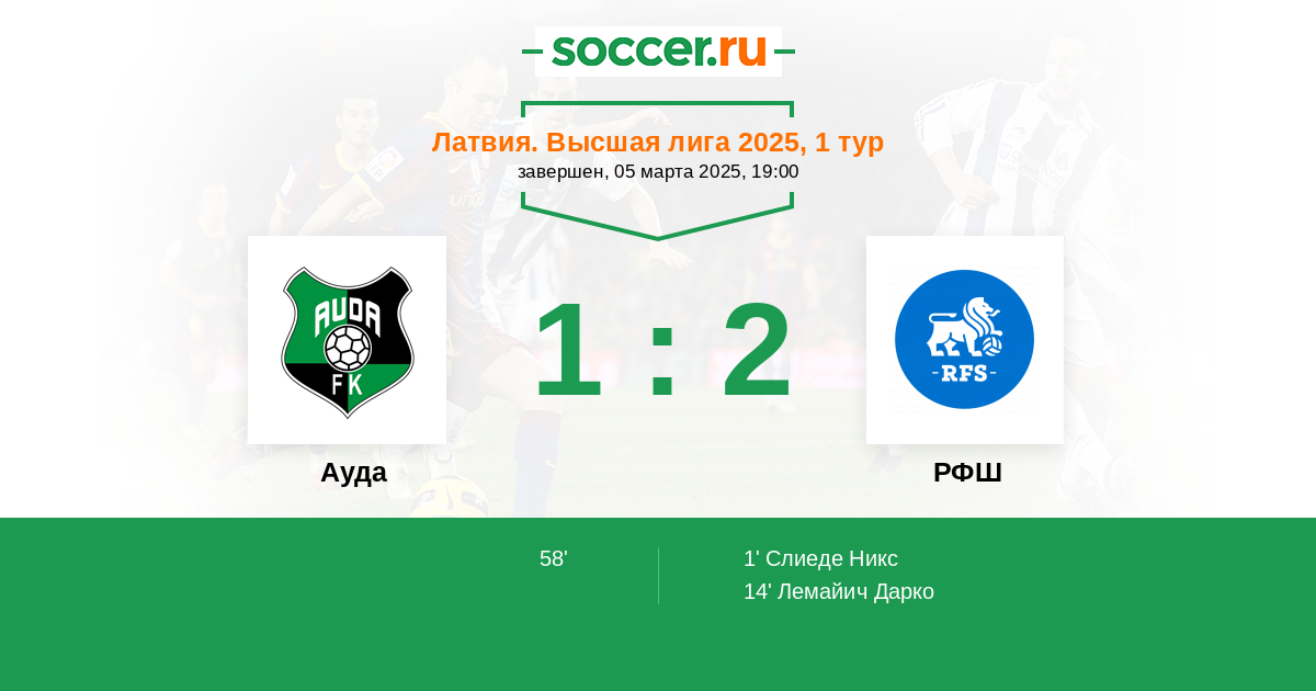 Протокол матча Ауда против РФШ