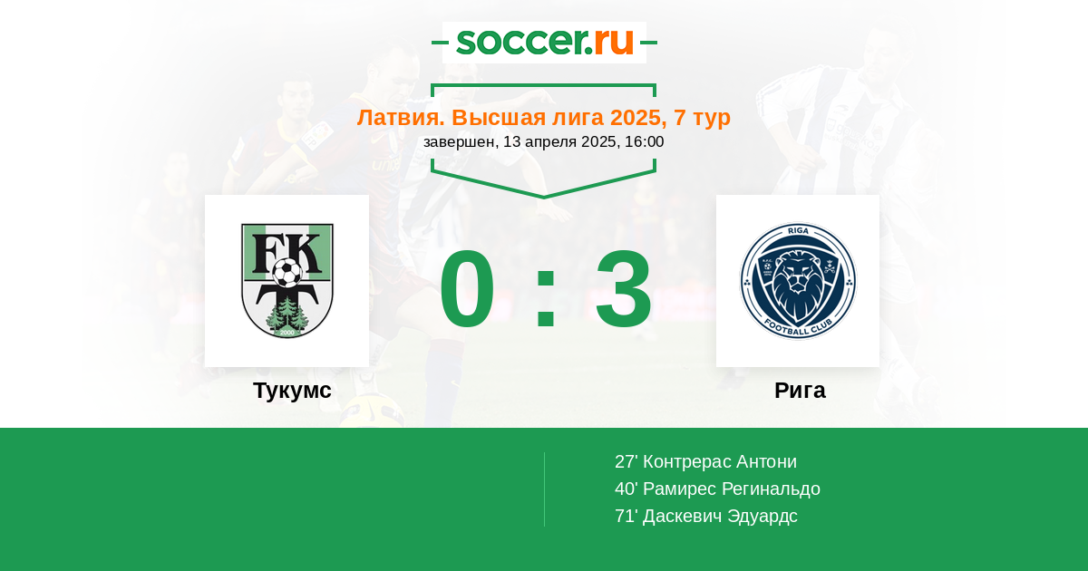 Протокол матча Тукумс против Рига