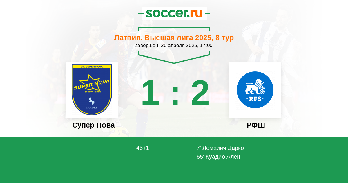 Протокол матча Супер Нова против РФШ