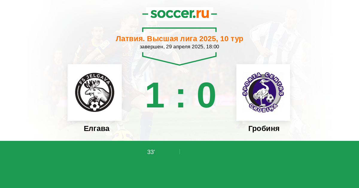 Протокол матча Елгава против Гробиня